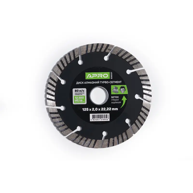 Код: 051871; Довжина: 310; Ширина: 270; Висота: 15; Упаковка: 25; Вага: 0.608; Напрямок обертання: 5; Найменування для ІМ Укр: Диск до бетону 230х2,4мм (22-24%) турбо-сегмент APRO; Посилання на сертіфікат: https://drive.google.com/file/d/14l1srR-fdPeX0Ri-5lKTm1jvDWI9M6vY/view;