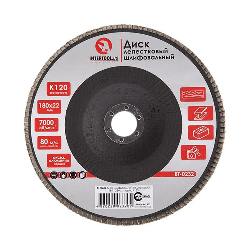 Диск шліфувальний пелюстковий 180 x 22мм зерно K120 INTERTOOL BT-0232