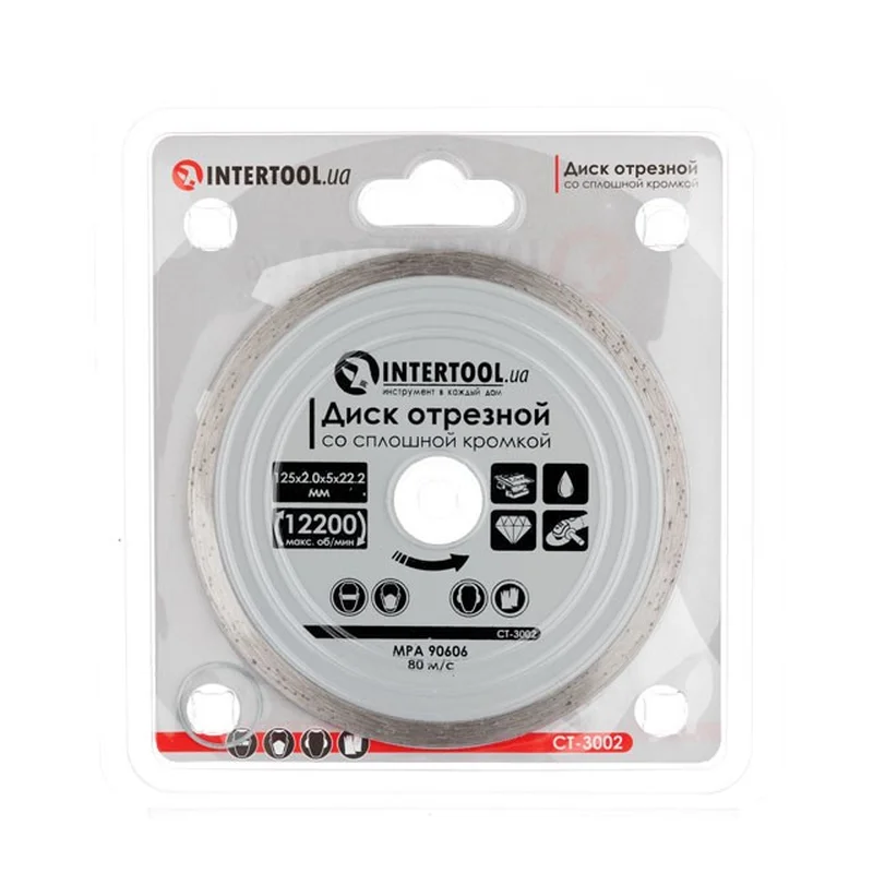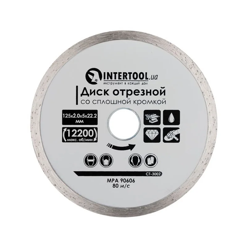 Диск відрізний алмазний з суцільною крайкою по плитці 125 мм, 16-18% INTERTOOL CT-3002