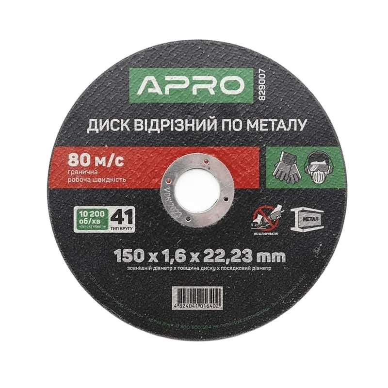 Диск відрізний Apro по металу 150х1,6х22,22 мм (829007)