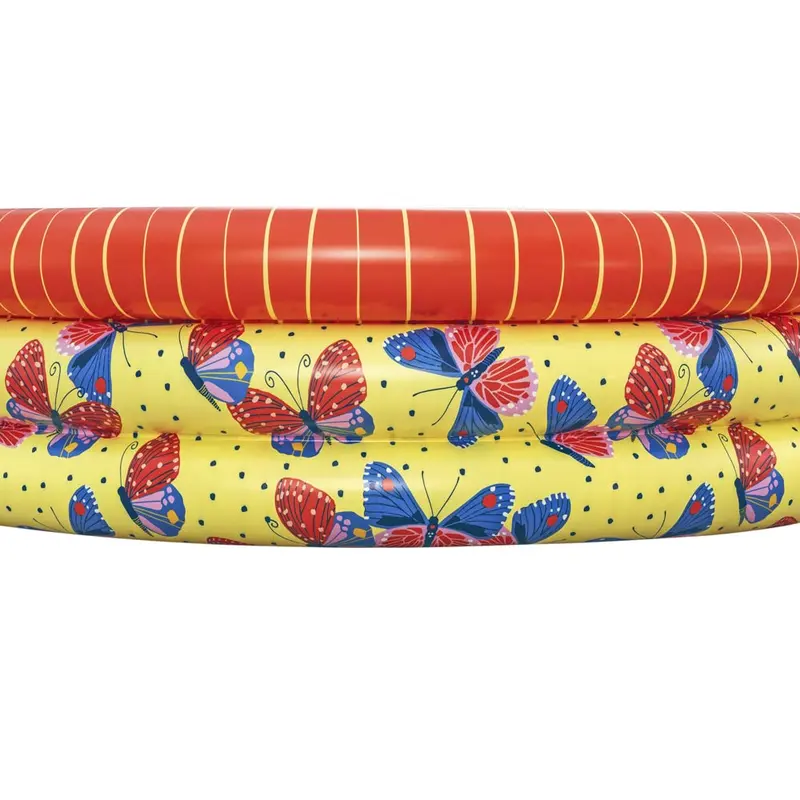 Басейн Bestway 51202 Метелики – це ідеальний варіант для купання та відпочинку дітей віком від 2 років. Завдяки невеликим габаритам і невеликій вазі його можна брати з собою на природу, дачу або море. Яскравий принт у вигляді метеликів приваблює дітей і доповнює атмосферу теплого літа. У зимовий час може використовуватися як манеж для ігор. Чаша виготовлена з тришарового армованого лайнера, а 3 надувних кільця забезпечують максимальну стійкість. У комплекті з басейном поставляється латка, за допомогою якої можна самостійно усунути невеликі механічні пошкодження.