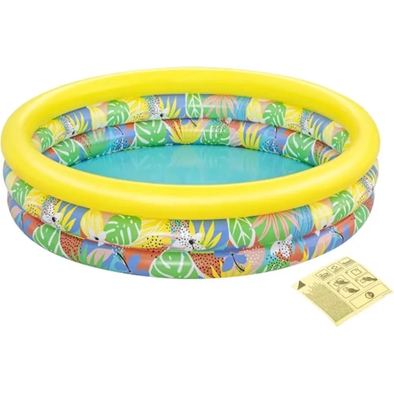 Басейн Bestway 51203 Квітковий рай – це ідеальний варіант для купання та відпочинку дітей віком від 2 років. Завдяки невеликим габаритам і невеликій вазі його можна брати з собою на природу, дачу або море. Яскравий принт у вигляді рослин приваблює дітей і доповнює атмосферу теплого літа. У зимовий час може використовуватися як манеж для ігор. Чаша виготовлена з тришарового армованого лайнера, а 3 надувних кільця забезпечують максимальну стійкість. У комплекті з басейном поставляється латка, за допомогою якої можна самостійно усунути невеликі механічні пошкодження.