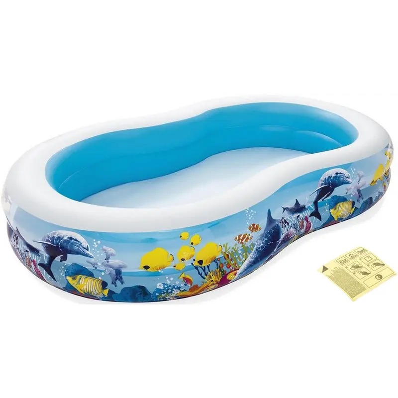 Басейн Bestway 54118 - це ідеальний варіант для купання та відпочинку дітей віком від 3 років. Завдяки невеликим габаритам і невеликій вазі його можна брати з собою на природу, дачу або море. Принт в стилі підводного світу приваблює дітей і доповнює атмосферу теплого літа. У зимовий час може використовуватися як манеж для ігор.Установка басейну займає 10 хвилин.Чаша виготовлена з тришарового армованого лайнера, а 2 надувних кільця забезпечать максимальну стійкість.У комплекті з басейном поставляється латка, за допомогою якої можна самостійно усунути невеликі механічні пошкодження.