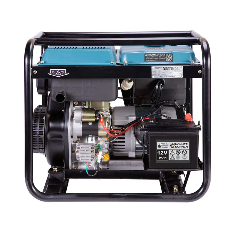 Для всіх моделей дизельних генераторів «Könner & Söhnen» в комплект входять додаткові гумові опори для захисту рами від корозії. Завдяки опорам, працюючий генератор не пошкодить покриття підлоги, а фарбування рами не буде подряпане. Також в комплект можна придбати транспортувальний набір.