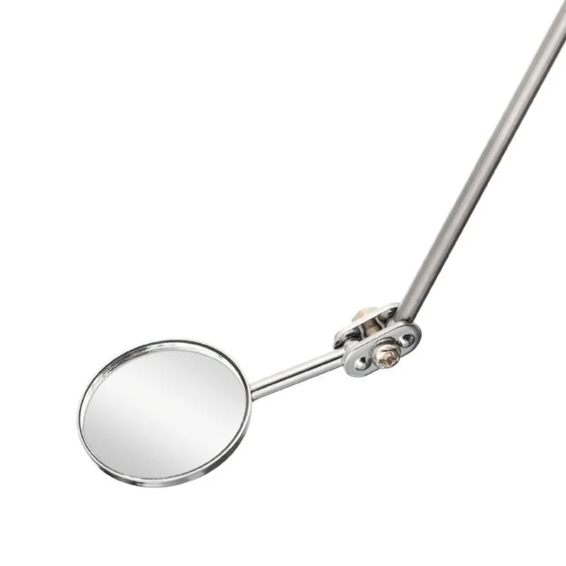 Кругле дзеркало діаметром 50 мм забезпечує відмінний огляд, завдяки кульовому шарніру може розміщуватися під необхідним кутом, що дуже зручно під час огляду днища та деталей під капотом машини. Телескопічна конструкція розкладається на потрібну вам довжину від 170 до 485 мм.