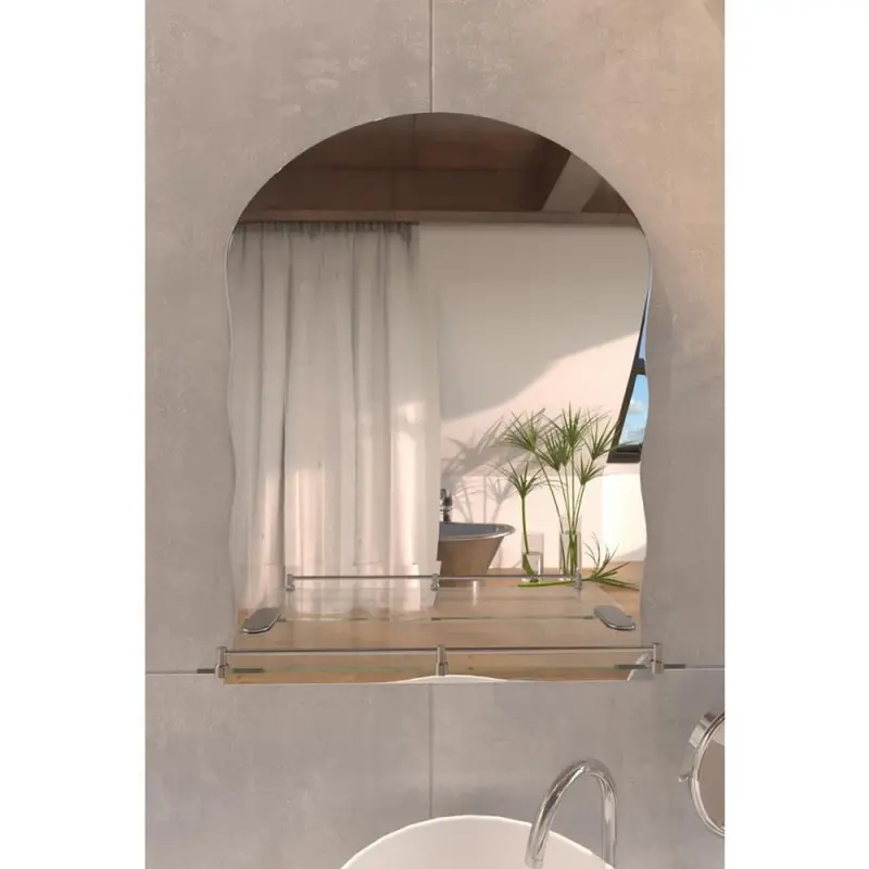 Дзеркало прямокутне Lidz 140.07.02 з полицею 425х575х105 кріпиться на стіну за допомогою шурупів, які входять до комплекту. Його можна помістити над умивальником в приміщенні з будь-яким інтер'єром завдяки лаконічному дизайну. Дзеркало виконано з дугоподібним верхом і фігурними боками. Комплектується разом з поличкою 385х115 мм з прозорого скла з хромованим бортиком, що запобігає випадковому падінню гігієнічних засобів. Полиця кріпиться до дзеркала за допомогою металевих тримачів.