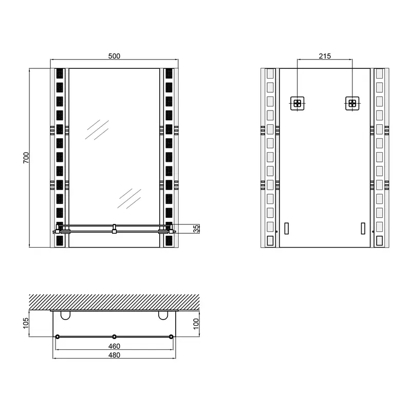 Дзеркало Lidz 140.07.06 500х700х105 з полицею