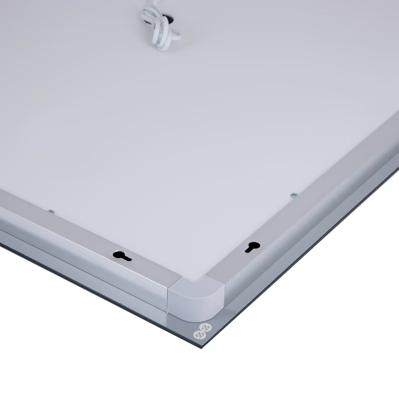 Дзеркало Lidz Kubis з антизапітнінням 700х800 LD78LF9048070 укомплектоване світлодіодною LED стрічкою з рівним насиченим світінням холодного білого кольору. LED стрічка не створює негативного впливу на зір людини. У дзеркалі передбачена функція ANTI-FOG – захист від запотівання. Управління здійснюється двома сенсорними кнопками на передній частині дзеркала, диммер дозволяє регулювати яскравість підсвічування.