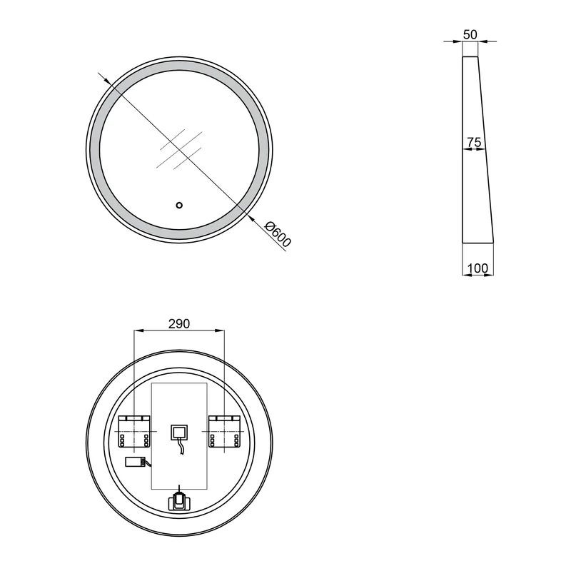 Дзеркало Qtap Robin R600 з LED-підсвічуванням Touch, з антизапотіванням, з димером, рег. темп. кольору (3000-6500K) QT13786501B