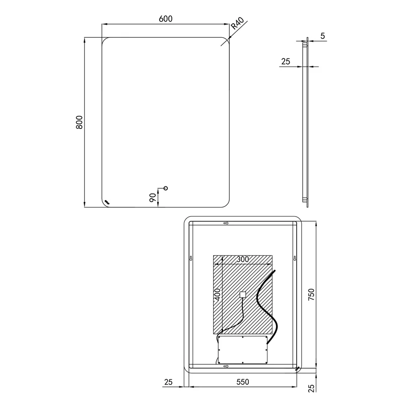 Дзеркало Qtap Scorpio 800х600 з LED-підсвічуванням Touch, з антизапотіванням, з димером, рег. темп. кольору (3000-6500K) Reverse QT14781003W