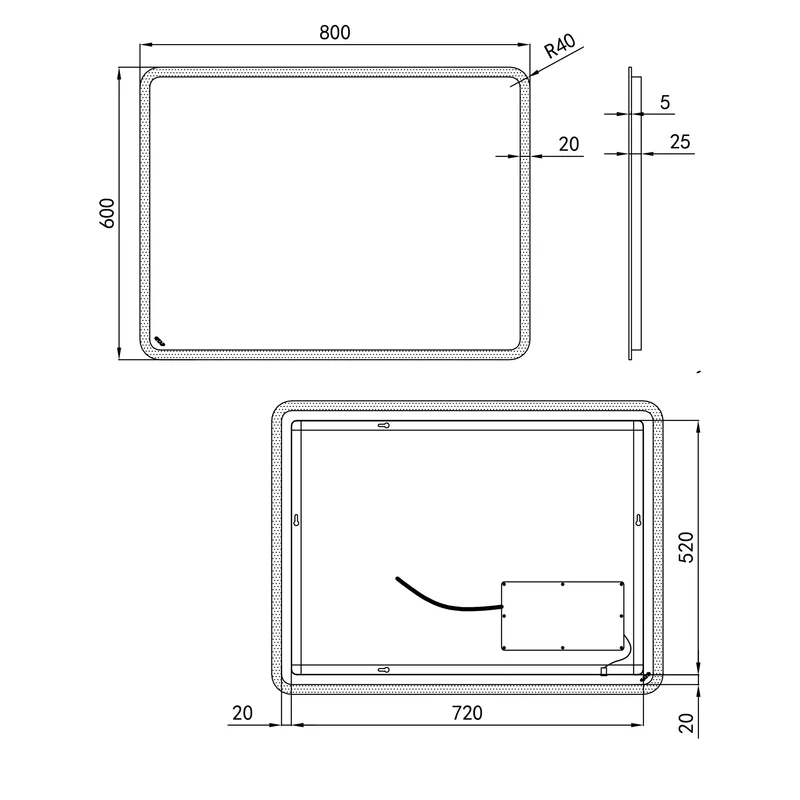 Дзеркало Qtap Tern 800х600 з LED-підсвічуванням Sensor, Reverse QT177814276080W