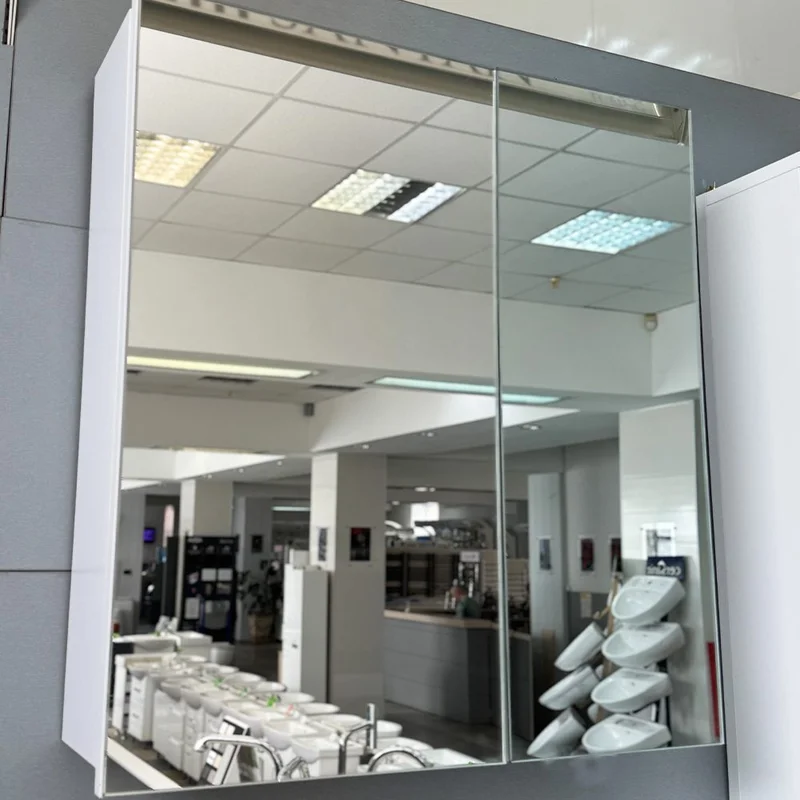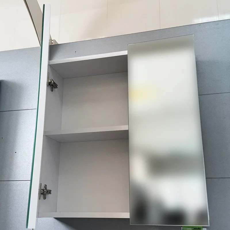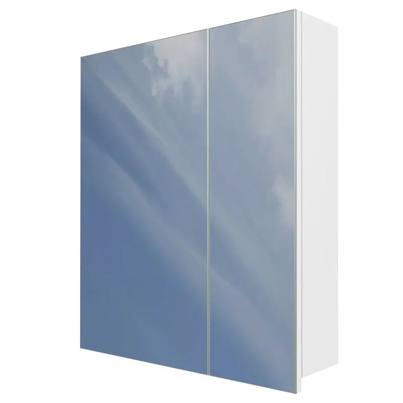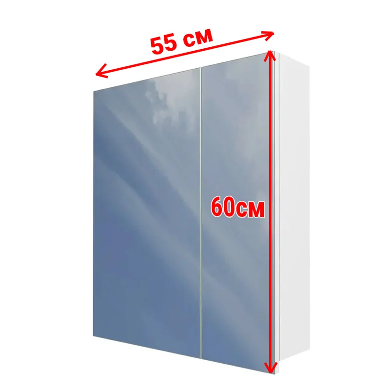 Дзеркало зі шафкою Wiangi 55/2 економ. Дзеркальна поверхня фасаду складається з 2 дверцят. Всередині 2 полки для речей. Багато місця, вистачить для необхідних речей на невелику родину.