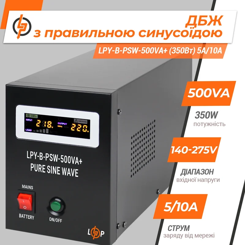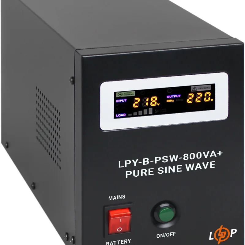 Джерело безперебійного живлення LogicPower LPY-B-PSW-800VA+ (560Вт)5A/15A, з правильною синусоїдою 12V