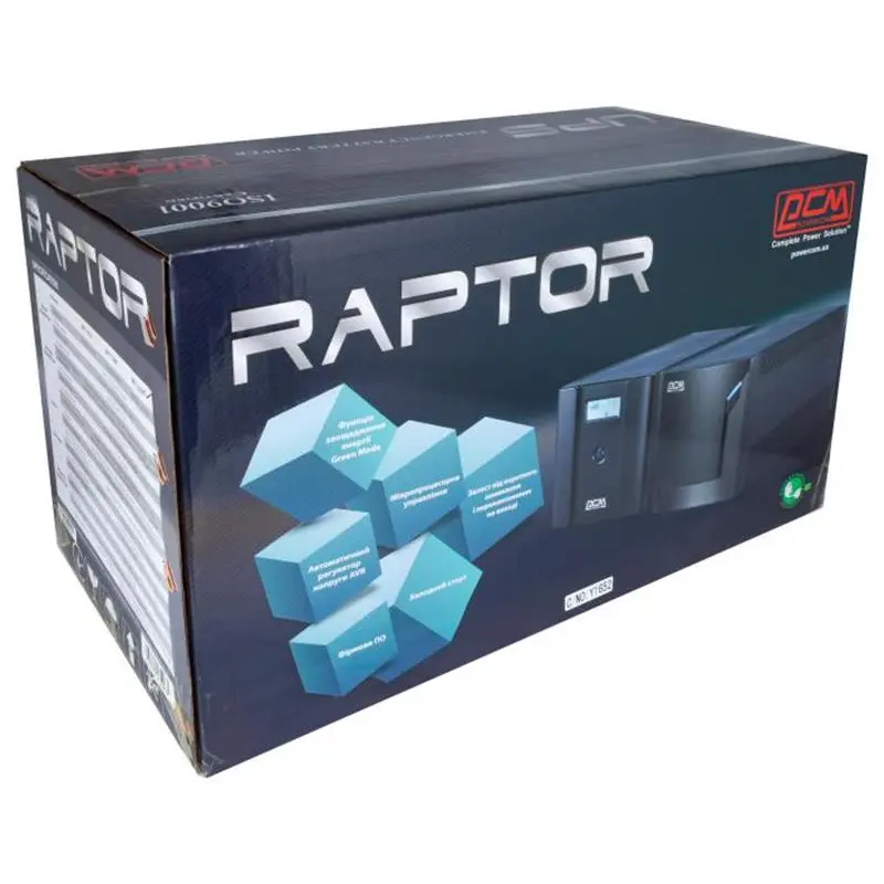 Модель призначена для захисту персональних комп’ютерів спільно з монітором, мережевих комутаторів, модемів та іншого обчислювального і телекомунікаційного устаткування від основних неполадок з електроживленням: перевантаження або короткого замикання; знижень, підвищень і повного зникнення напруги в електромережі. Лінійно-інтерактивні ДБЖ серії RAPTOR з LCD забезпечать надійний захист вашої техніки, при цьому знаходяться в доступному ціновому сегменті разом з іншими моделями серії, а нові функції зроблять процес використання приладу більш зручним. Вбудований стабілізатор напруги (AVR) підтримує вихідну напругу в межах норми, не використовуючи ресурс акумулятора при коливанні напруги електромережі. Комунікаційний порт USB для зв’язку з комп’ютером дозволить своєчасно завершити роботу системи зі збереженням даних. ДБЖ має стильний дизайн, яскравий РК-дисплей, що відображає режими роботи ДБЖ, заряд акумулятора та вихідну напругу, і знімний шнур, що дозволяє безпечно переміщати пристрій.