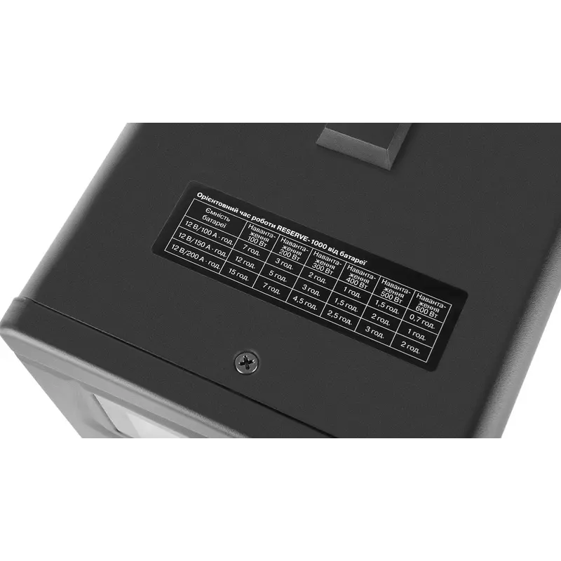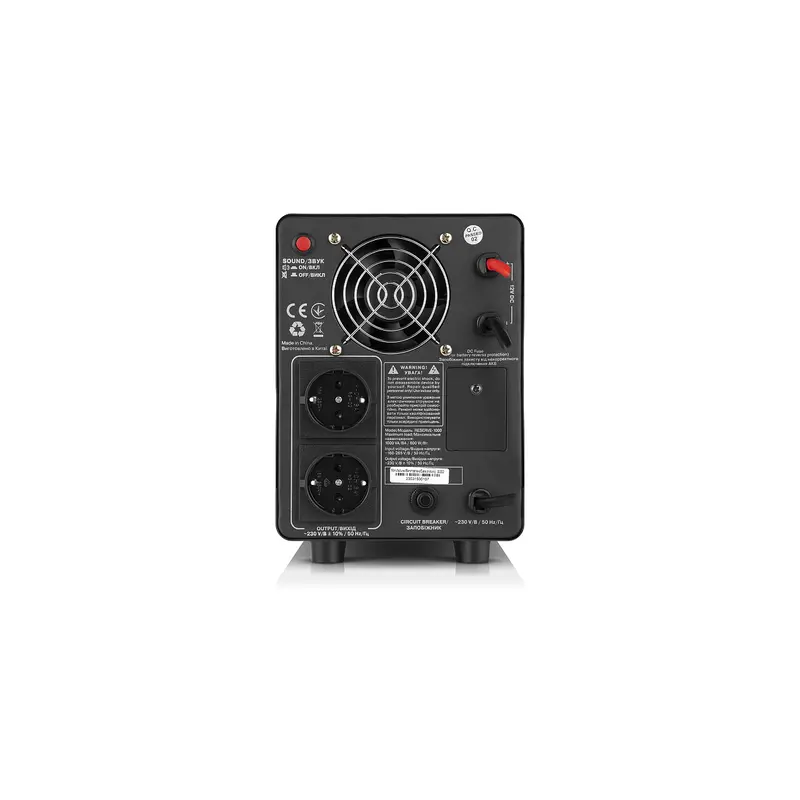 Лінійно-інтерактивне ДБЖ безперервної дії з тривалим часом резервування для підключення зовнішніх батарей RESERVE-1000 призначено для експлуатації зі свинцево-кислотними необслуговуваними акумуляторними батареями типу AGM з напругою 12 В. Принцип його дії засновано на перетворенні постійного струму зовнішніх батарей у змінний. Форма струму на виході – правильна синусоїда. ОСОБЛИВОСТІ Правильна синусоїда вихідної напруги Безперервна дія з тривалим часом резервування Вмонтований стабілізатор напруги мережі Мікропроцесорне управління Захист від КЗ в підключеному до ДБЖ навантаженні, а також від перевантаження Захист від підвищеної або зниженої напруги мережі Ступінь захисту від зовнішнього впливу IP-20 Самодіагностика при вмиканні Індикація режимів роботи на LCD-дисплеї Час перемикання режимів – менше 4 мсек Функція «автостарт» Низький рівень шуму