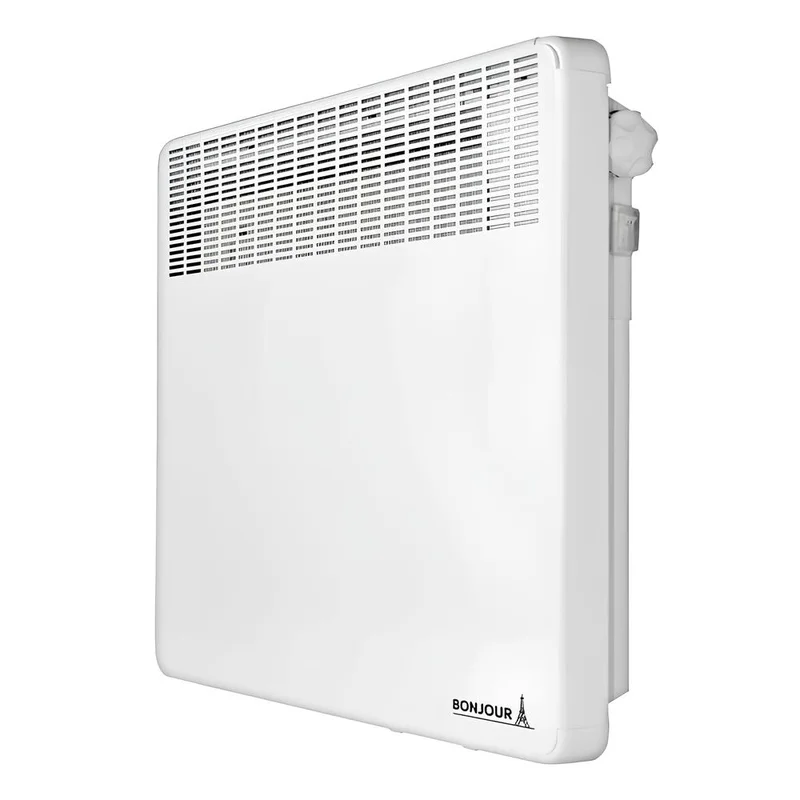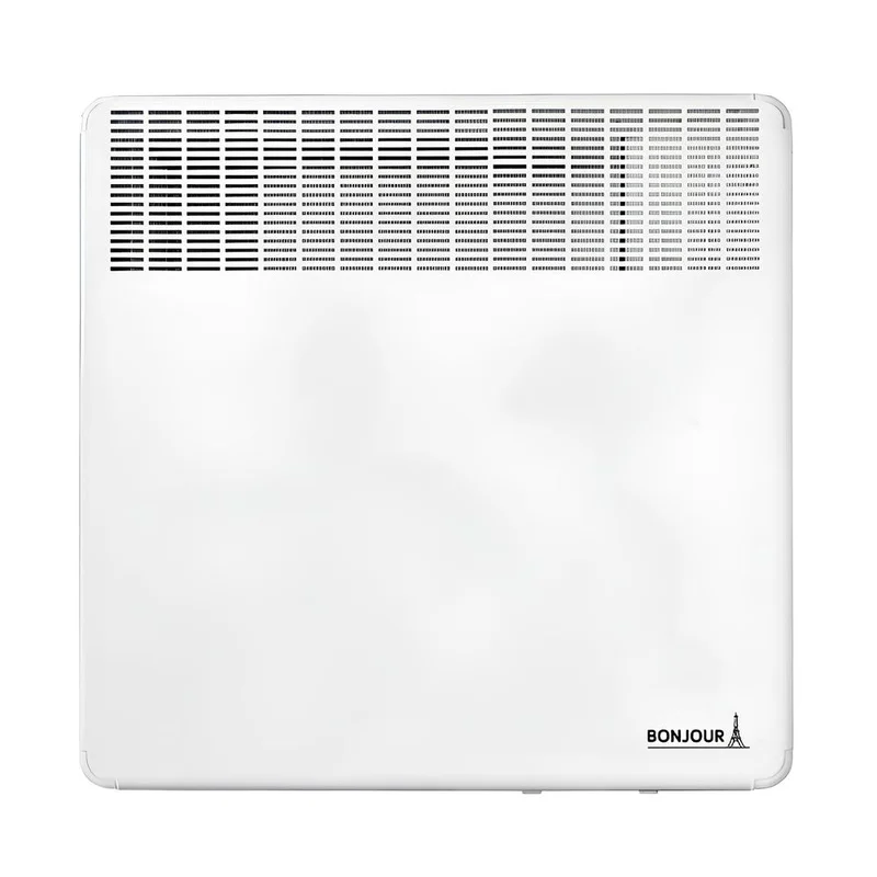 Быстрый прогрев и распределение тепла происходит за счет оснащения конвектора мощным нагревательным элементом Bonjour Turbo Heat 10 с алюминиевым диффузором и защитной оболочкой из нержавеющей стали. Наличие диффузора увеличивает площадь теплообмена и скорость прогрева воздуха в помещении, а передняя панель при этом не перегревается. Новый, более тонкий и компактный, корпус с оптимизированной решеткой специально разработан для ускоренной циркуляции воздушного потока и оптимального обогрева помещения площадью до 12,5 м2. При этом конвектор работает бесшумно.