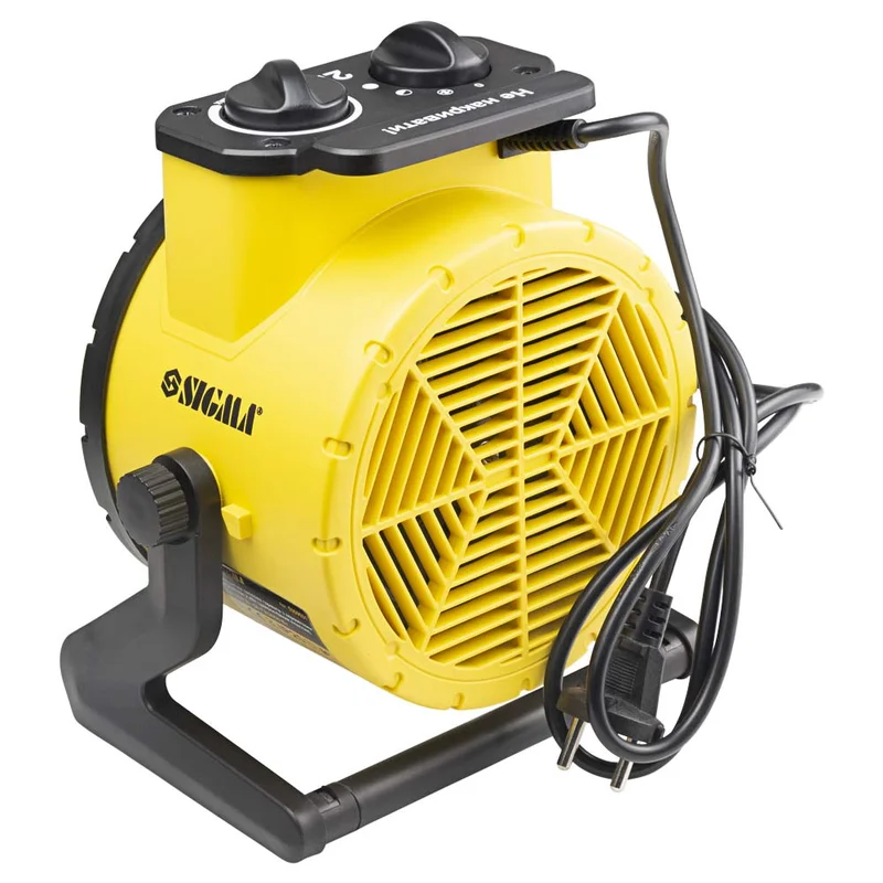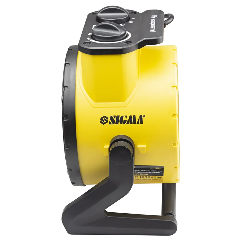 Електрична теплова гармата з керамічним нагрівачем 2.0 кВт (ударостійкий пластик) SIGMA (5359531) – ефективна та компактна модель, призначена для обігріву або вентиляції житлових та нежитлових приміщень, а також для просушування різних поверхонь на будівельних об'єктах. Модель обладнана керамічним нагрівальним елементом та надійним вентилятором, має два режими обігріву та режим вентиляції. У неї зручне регулювання кута нахилу та мережевий кабель завдовжки 1.6 м.