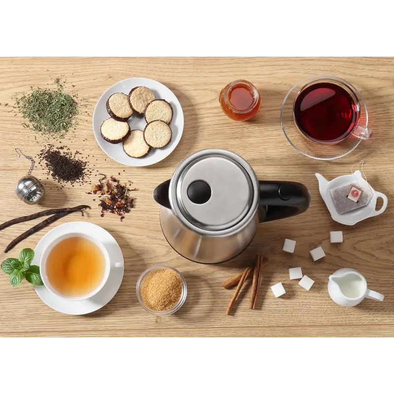Закип'ятити воду одразу на всю компанію Завдяки об'єму чайника на 1,7 л, ви зможете закип’ятити воду одразу на всю сім’ю. Дуже зручно також, коли у вас в гостях купа друзів. Жодних сплутаних дротів Можливість кругового обертання гарантує легкість користування чайником. Більше жодних сплутаних дротів, поставити чайник чи кавоварку на базу можна з будь-якого боку. Захист від википання та перегрівання Чайник автоматично вимкнеться за випадкового ввімкнення, коли в ньому недостатньо води, або коли температура досягне 100 °C. Не поспішайте, розслабтеся та насолоджуйтеся.