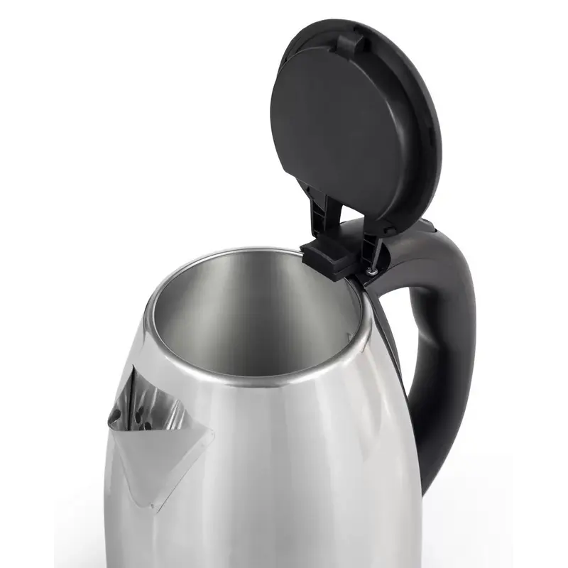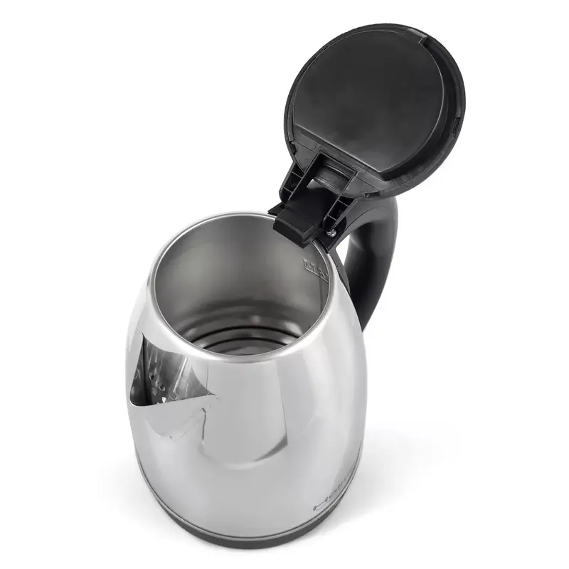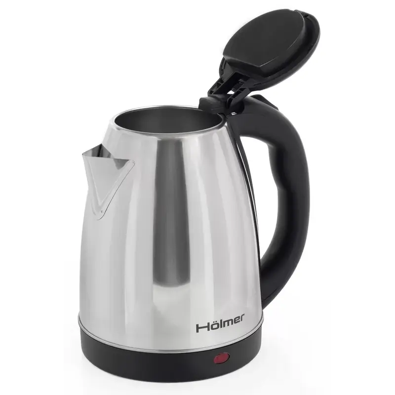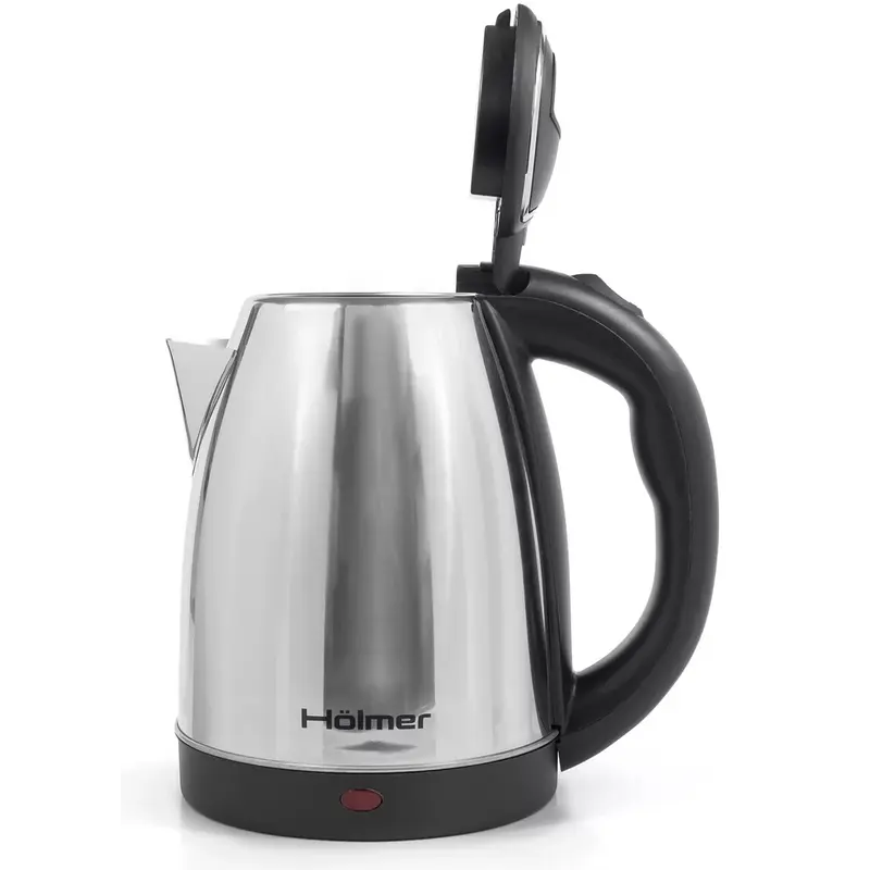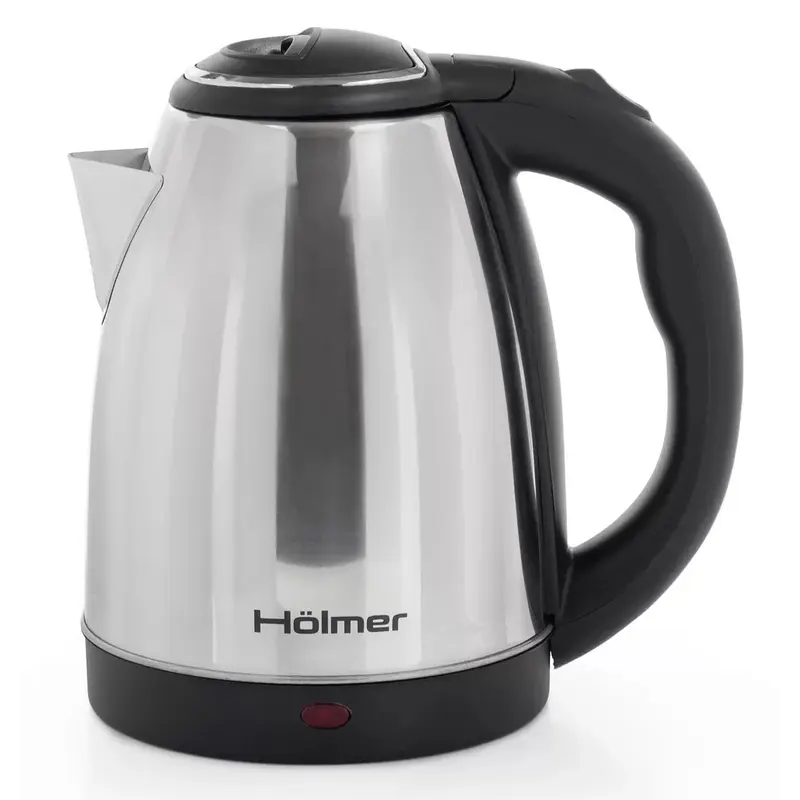 Металевий електрочайник Holmer HKG-1510 об’ємом 1.8 л та потужністю 1800 Вт. Має систему автоматичного відключення під час закипання. Підставка-основа чайника повертається на 360 градусів. Корпус чайника виготовлений із нержавіючої сталі. Об'єм чайника 1,8 л, цього об'єму достатньо, щоб закип'ятити воду для 5-6 чашок. Кришка відкривається під кутом 90°, що покращує набір води і чистку чайника. Обертання чайника на підставці 360°.