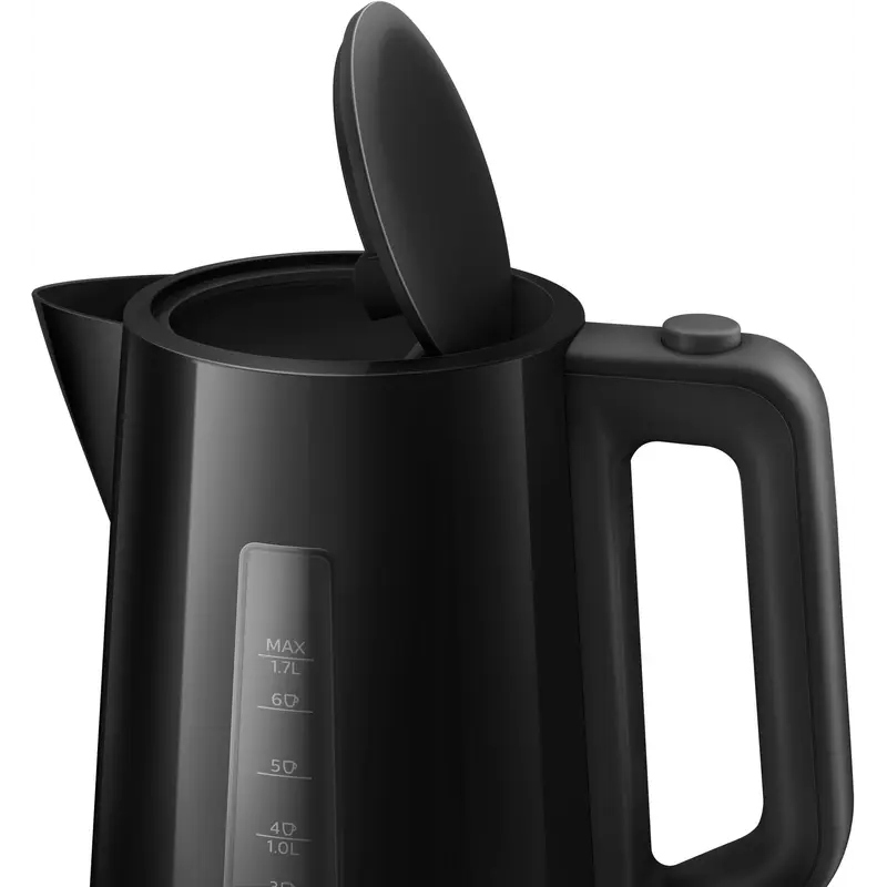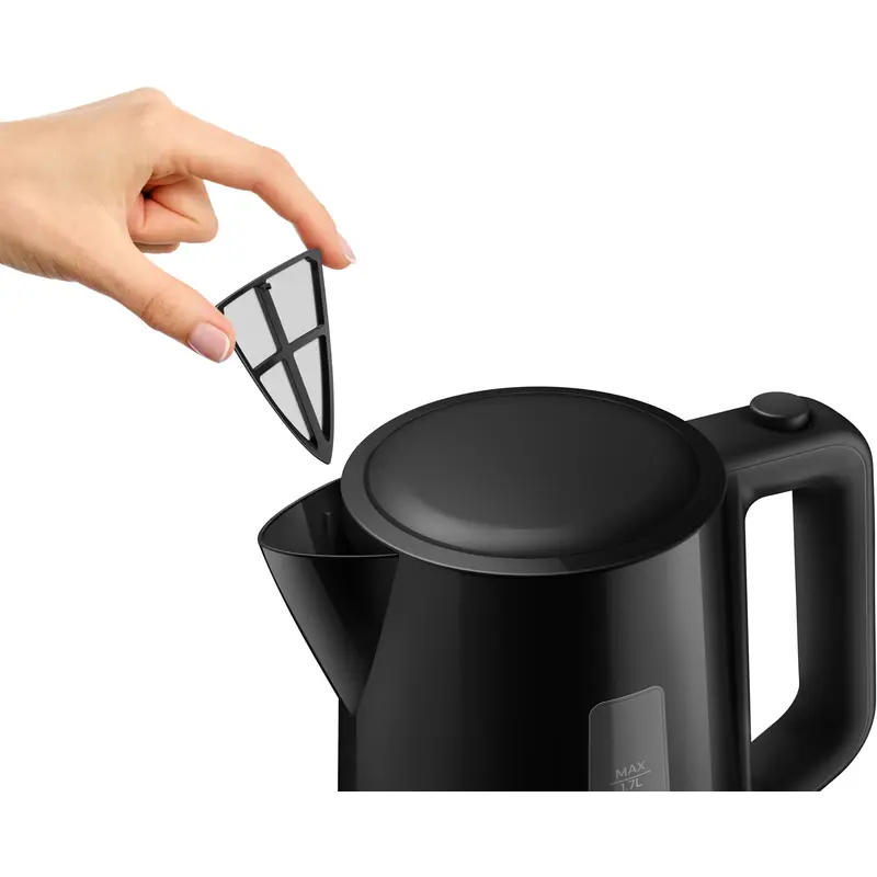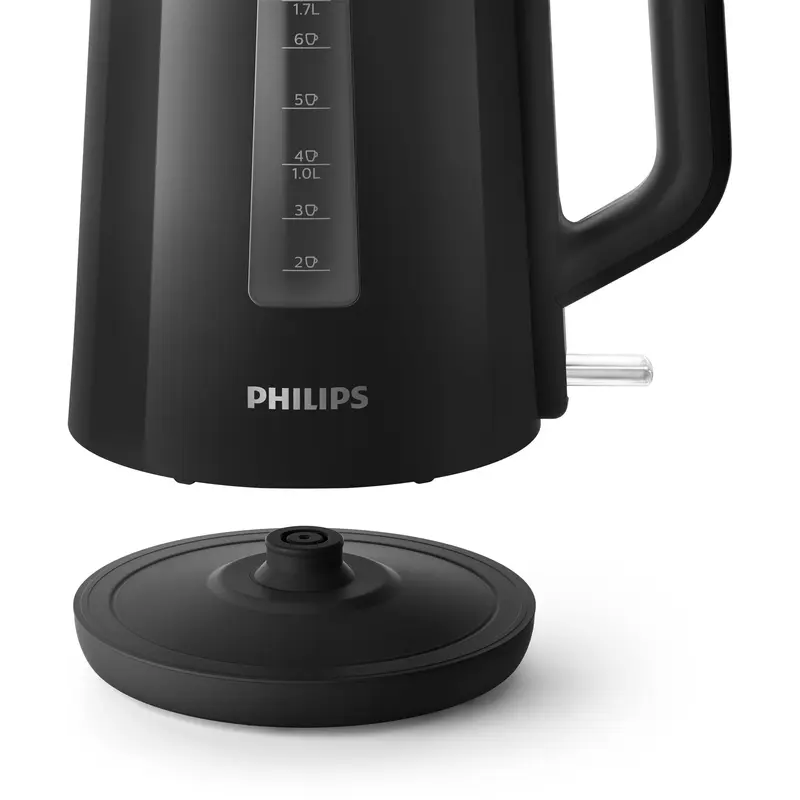 Плаский нагрівальний елемент для швидкого кип'ятіння Вбудований нагрівальний елемент із неіржавкої сталі забезпечує швидке кип'ятіння й просте очищення. Мікрофільтр для фільтрування найдрібніших частинок накипу Знімний мікрофільтр у носику утримує найдрібніші часточки накипу розміром 200 мікронів, щоб вода завжди була чистою. Комплексна система безпеки запобігає википанню води Комплексна система безпеки для запобігання википанню води. Функція автоматичного вимкнення активується після закінчення процесу. Підсвітка на вимикачі загоряється, коли чайник увімкнений Красиве підсвічування вимикача чайника засвічується, коли чайник увімкнений. Зручний індикатор рівня води Зручний індикатор на бічній поверхні чайника дає змогу стежити за кількістю води. Індикатор води на одну чашку дає змогу закип'ятити стільки води, скільки потрібно Якщо ви кип'ятитимете рівно стільки води, скільки потрібно, ви заощаджуєте енергію й воду, в такий спосіб робите свій внесок у захист довкілля. Кришка на пружині, яка широко відкривається для зручного очищення Кришка плавно відкривається натисканням кнопки, що виключає контакт із парою. Широкий отвір спрощує процес очищення. Просте наповнення через кришку або носик Наповнити чайник можна через носик або, відкривши кришку на пружині. Бездротовий чайник на підставці з поворотом 360° Бездротовий чайник на підставці з поворотом 360° для зручності використання. Котушка для зручного змотування і зберігання шнура Шнур можна обмотати навколо підставки для регулювання довжини та зручного зберігання.