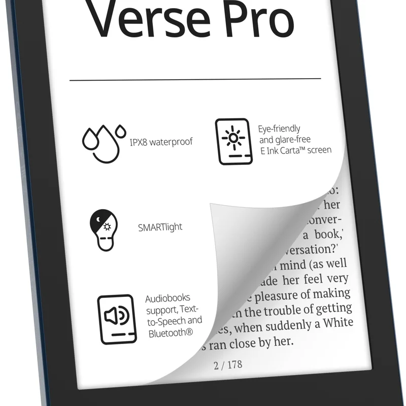 Читалка PocketBook 634 Verse PRO Представляємо Pocketbook Verse PRO – вашого надійного супутника у світі електронного читання. Цей компактний і легкий рідер поєднує в собі найсучасніші функції та технології в елегантному та зручному корпусі. Pocketbook Verse незабаром стане незамінним помічником для будь-якого любителя читання. Потужне обладнання Серце рідера - двоядерний процесор із частотою 1 ГГц (Allwinner B288), який у поєднанні з 512 МБ оперативної пам’яті забезпечує плавну роботу та швидке відкриття улюблених електронних книг. Його 6-дюймовий дисплей E Ink Carta HD має роздільну здатність 1072 x 1448 і 16 рівнів сірого, що дозволяє насолоджуватися чітким і яскравим відображенням тексту та зображень. З сенсорним екраном Крім того, рідер оснащений ємнісним мультисенсорним сенсорним екраном та інтелектуальним підсвічуванням SMARTlight, що забезпечує комфортне читання при будь-якому освітленні. Він також оснащений внутрішньою пам’яттю об’ємом 16 ГБ і, таким чином, пропонує достатньо місця для зберігання великої бібліотеки. Зручне підключення Пристрій оснащений можливістю підключення Wi-Fi для швидкого доступу до онлайн-сервісів, таких як PocketBook Cloud, ReadRate та багато інших. Він також підтримує багато додатків, включаючи книгарню, бібліотеку, словник, браузер, галерею. Тому вам не доведеться турбуватися про достатню кількість сумісного контенту. Крім підключення Wi-Fi, у вас буде класичний інтерфейс USB-C. Ключові властивості Pocketbook Verse – це не тільки технічні характеристики; йдеться про загальний досвід. Завдяки апаратним кнопкам перегортання сторінок та датчику обкладинки читання стає більш комфортним та інтуїтивно зрозумілим. Ця програма читання, оснащена рядом встановлених програм, включаючи бібліотеку, словник, браузер та галерею, гарантує, що все необхідне буде у вас під рукою. Крім того, завдяки акумулятору ємністю 1500 мАг ви зможете насолоджуватися довгим годинником безперервного читання без необхідності постійного заряджання. Пристрій також пропонує широкий вибір форматів електронних книг та зображень, що дозволяє вам насолоджуватися улюбленою літературою в будь-якому форматі, який ви надаєте перевагу. Pocketbook Verse Pro - чудовий додаток для всіх, хто любить читати. Компактні розміри (108х156х7,6 мм) та невелика вага (186 г) роблять його ідеальним супутником у подорожі.