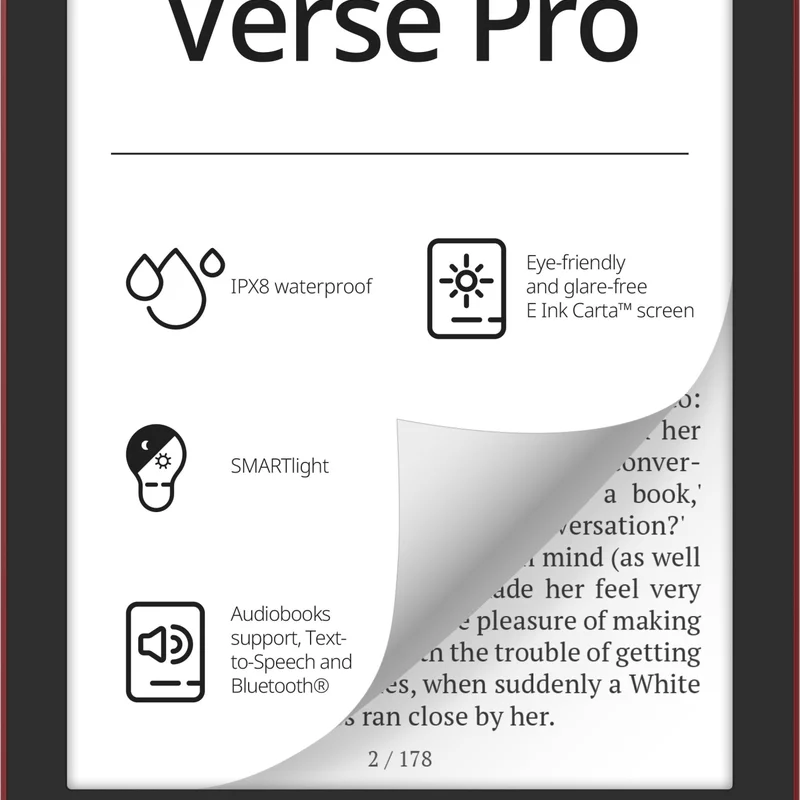 Читалка PocketBook 634 Verse PRO Представляємо Pocketbook Verse PRO – вашого надійного супутника у світі електронного читання. Цей компактний і легкий рідер поєднує в собі найсучасніші функції та технології в елегантному та зручному корпусі. Pocketbook Verse незабаром стане незамінним помічником для будь-якого любителя читання. Потужне обладнання Серце рідера - двоядерний процесор із частотою 1 ГГц (Allwinner B288), який у поєднанні з 512 МБ оперативної пам’яті забезпечує плавну роботу та швидке відкриття улюблених електронних книг. Його 6-дюймовий дисплей E Ink Carta HD має роздільну здатність 1072 x 1448 і 16 рівнів сірого, що дозволяє насолоджуватися чітким і яскравим відображенням тексту та зображень. З сенсорним екраном Крім того, рідер оснащений ємнісним мультисенсорним сенсорним екраном та інтелектуальним підсвічуванням SMARTlight, що забезпечує комфортне читання при будь-якому освітленні. Він також оснащений внутрішньою пам’яттю об’ємом 16 ГБ і, таким чином, пропонує достатньо місця для зберігання великої бібліотеки. Зручне підключення Пристрій оснащений можливістю підключення Wi-Fi для швидкого доступу до онлайн-сервісів, таких як PocketBook Cloud, ReadRate та багато інших. Він також підтримує багато додатків, включаючи книгарню, бібліотеку, словник, браузер, галерею. Тому вам не доведеться турбуватися про достатню кількість сумісного контенту. Крім підключення Wi-Fi, у вас буде класичний інтерфейс USB-C. Ключові властивості Pocketbook Verse – це не тільки технічні характеристики; йдеться про загальний досвід. Завдяки апаратним кнопкам перегортання сторінок та датчику обкладинки читання стає більш комфортним та інтуїтивно зрозумілим. Ця програма читання, оснащена рядом встановлених програм, включаючи бібліотеку, словник, браузер та галерею, гарантує, що все необхідне буде у вас під рукою. Крім того, завдяки акумулятору ємністю 1500 мАг ви зможете насолоджуватися довгим годинником безперервного читання без необхідності постійного заряджання. Пристрій також пропонує широкий вибір форматів електронних книг та зображень, що дозволяє вам насолоджуватися улюбленою літературою в будь-якому форматі, який ви надаєте перевагу. Pocketbook Verse Pro - чудовий додаток для всіх, хто любить читати. Компактні розміри (108х156х7,6 мм) та невелика вага (186 г) роблять його ідеальним супутником у подорожі.