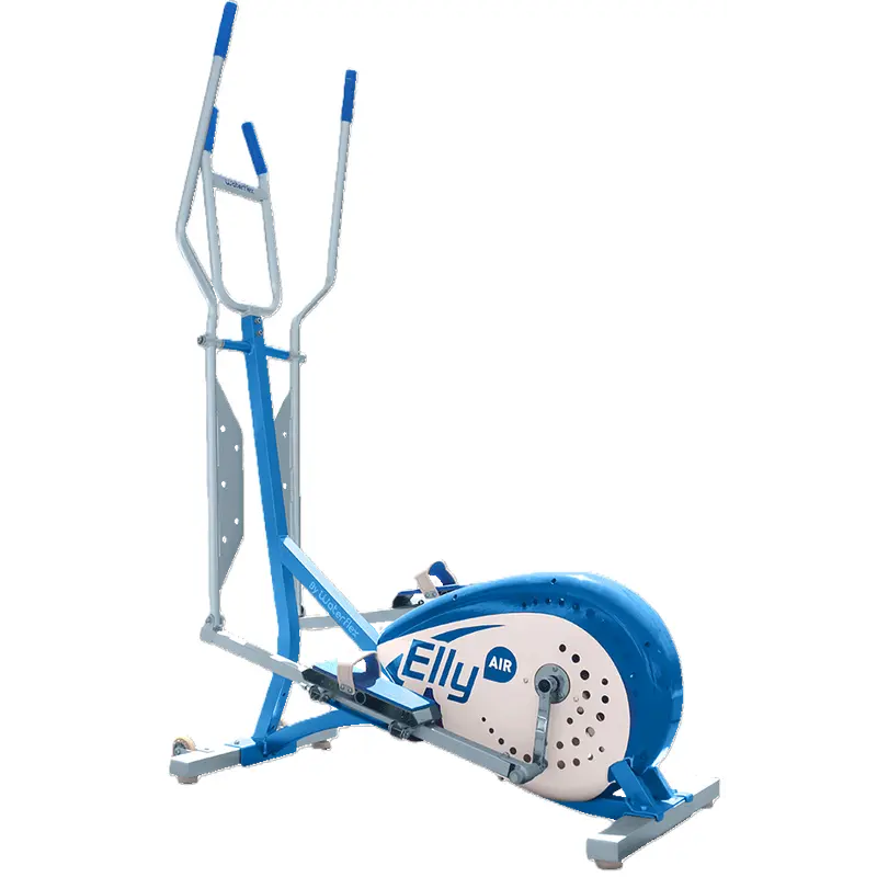 Еліптичний тренажер Waterflex Elly Air – це ідеальний варіант для інтенсивного аквафітнесу, крос-тренінгу та реабілітації. Імітація скандинавської ходьби дає можливість розвивати силу і витривалість, залучаючи 80% м'язів тіла без ударного навантаження на суглоби. Тренажер підходить для людей зростом від 155 см до 195 см і вагою до 150 кг. Ергономічні рухомі важелі, широкі анатомічні педалі для використання босоніж та стабільна база забезпечують комфорт і безпеку під час тренувань. Цей еліптичний тренажер виготовлений з анодованого алюмінію преміумкласу марки Tech T6 (Marine Grade) і підходить для регулярного використання в термальній, морській і хлорованій воді. Модель комплектується силіконовими колесами для легкого транспортування та захисними опорами для будь-якого типу дна.