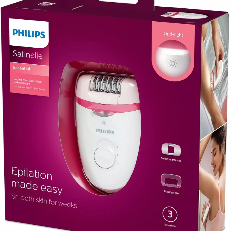 Насолоджуйтеся гладенькими ніжками протягом тижнів завдяки епілятору Philips Satinelle. Він лагідно видаляє волосся довжиною лише 0,5 мм із коренем. Епіляція – це просто завдяки ергономічній ручці та головці, яку можна мити для оптимальної гігієни. Ефективна система епіляції видаляє волосся з коренем Ефективна система епіляції видаляє волосся, залишаючи шкіру гладенькою на кілька тижнів Унікальна вбудована підсвітка для кращої видимості дрібного волосся Завдяки унікальній вбудованій підсвітці Ви будете пропускати менше волосся, що гарантує ефективнішу епіляцію. 2 налаштування швидкості для захоплення тоншого і товстішого волосся 2 налаштування швидкості для видалення тоншого і товстішого волосся та забезпечення більш персоналізованих процедур. Фігурна ергономічна ручка для зручного користування Завдяки заокругленій формі пристрій ідеально вміщається у руці, що дозволяє зручно видаляти волосся. А ще він чудовий на вигляд! Головку епілятора можна мити – для додаткової гігієни та легкого чищення Цей епілятор має головку, яку можна мити. Головку можна від’єднати та помити проточною водою для кращої гігієни Насадка для видалення небажаного волосся на чутливих ділянках Для додаткової лагідності під час обробки різних ділянок тіла додається насадка для чутливих ділянок, яка легко видалить волосся з-під рук і в зоні бікіні. У комплекті масажна насадка Масажна насадка тамує неприємні відчуття під час епіляції. Дорожній футляр Дорожній футляр для зберігання і транспортування