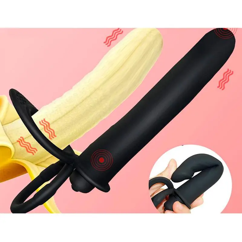 Ерекційне кільце з вібрацією і фалоімітатором для подвійного проникнення - віброфалоімітатор, який одягається на пеніс і мошонку за допомогою кільця.Колір: тілеснийХарактеристика: Матеріал: Силікон Розмір: 15 * 2 см Кількість швидкостей: 10 Рівень шуму: 50 дБ Водонепроникність: IPX7 Живлення: від 1 батарейки типу ААА Діаметр кілець 3,7 см і 2,7 см