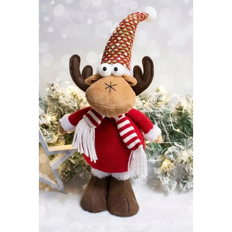 Фігурка новорічна, 48 см, Олень, текстильний, коричневий, червоний