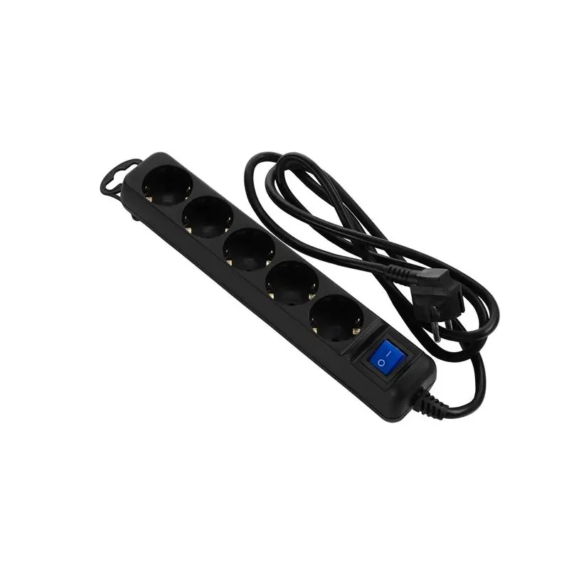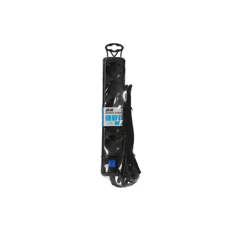 Мережевий подовжувач 2E модель U05ESM1.5 із вимикачем призначений для підключення офісної та побутової техніки сумарною потужністю до 3,5 кВт. Має п’ять євророзеток типу Schuko із заземленням і захисні шторки. Трижильний кабель із перерізом жили 1,5 мм2, матеріал провідника – мідь.