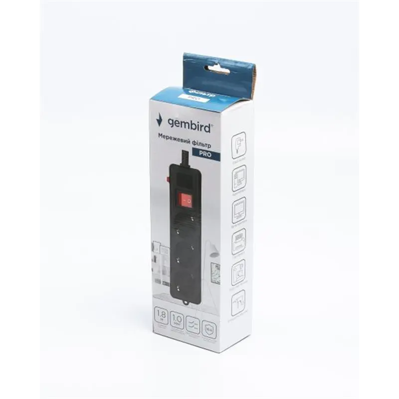 Фільтр живлення Gembird Pro (SPG3-G-6B-PRO) 3 розетки, 1.8м, чорний