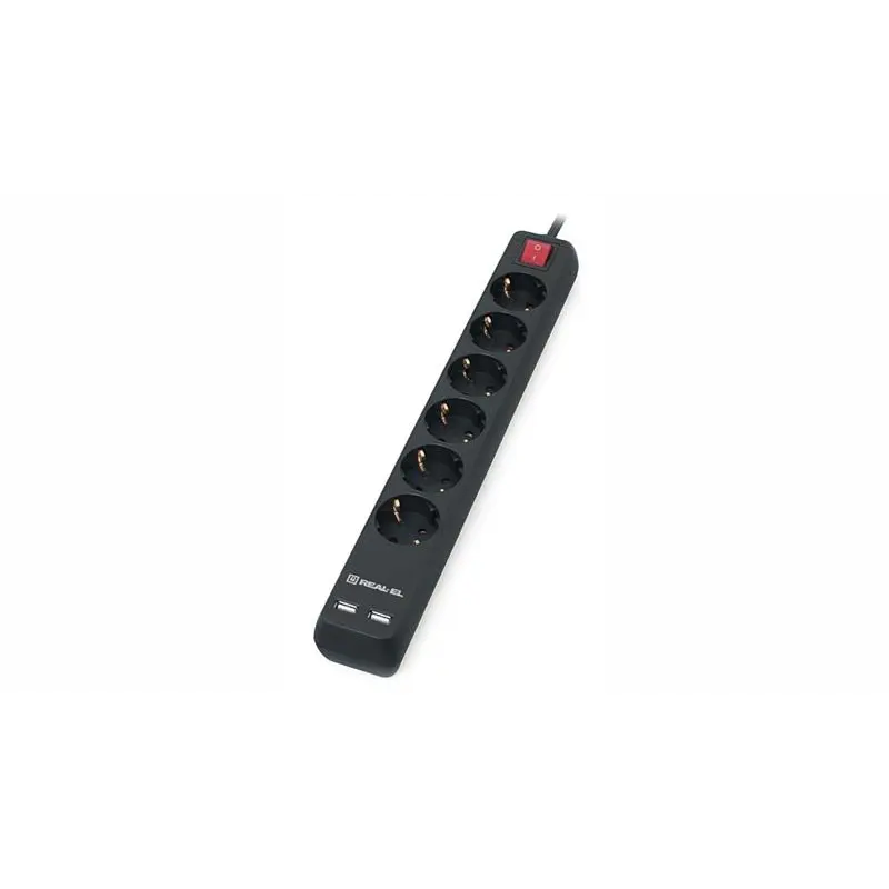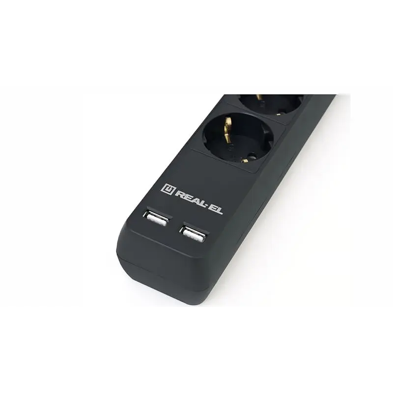 Фільтр живлення REAL-EL RS-6 Protect USB 3m Black
