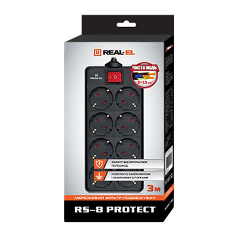 Фільтр живлення REAL-EL RS-8 Protect 1.8m Black