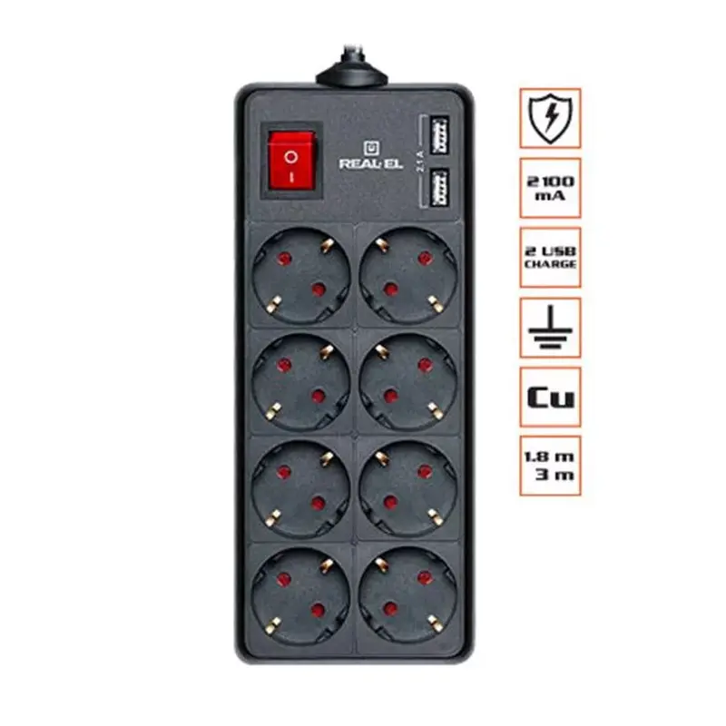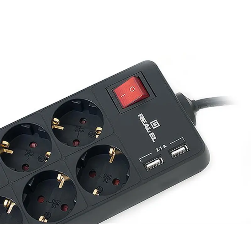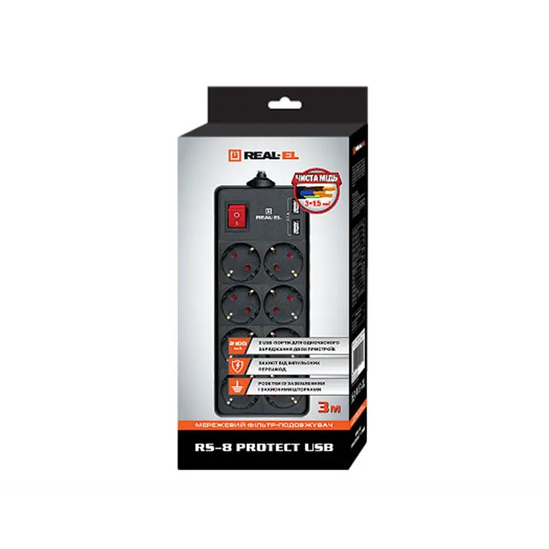 Фільтр живлення REAL-EL RS-8 Protect USB 3.0m Black