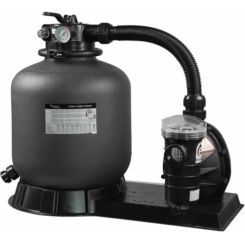 Фільтраційна установка Emaux FSP400-SS033 - це пісочна система очищення води з верхнім типом підключення. Призначена для обслуговування приватних плавальних басейнів об'ємом до 26 000 літрів. Фільтруючий бак виготовлений з високоміцного поліпропілену, стійкого до корозії, впливу ультрафіолету та хімічних реагентів. Насос з префільтром, виконаний із термостійкого пластика та скловолокна. Система комплектується 4-режимним клапаном управління фільтрацією, сполучними муфтами і установочною платформою. Фільтраційна установка складається з фільтру Emaux P400 та насоса Emaux SS033. Продуктивність: 6.48 м³/годНасос: 0.43 кВт (0.33 к. с)Підключення: 50 мм