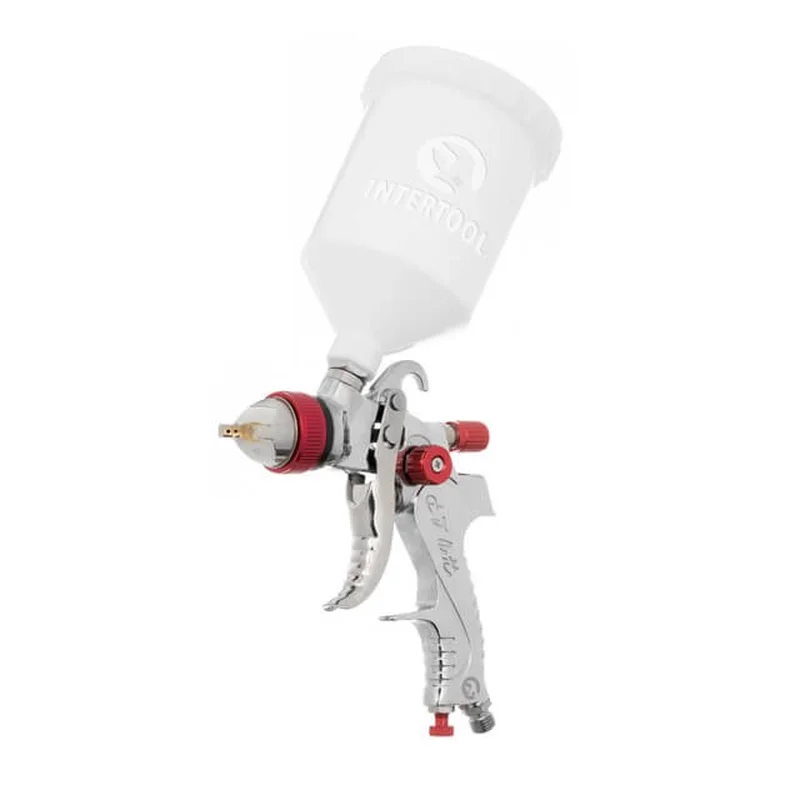 Фарбопульт пневматичний HVLP з трьома наборами форсунок - 1,3 мм, 1,4 мм, 1,7 мм, пластиковий бачок, 3 бар INTERTOOL PT-0153