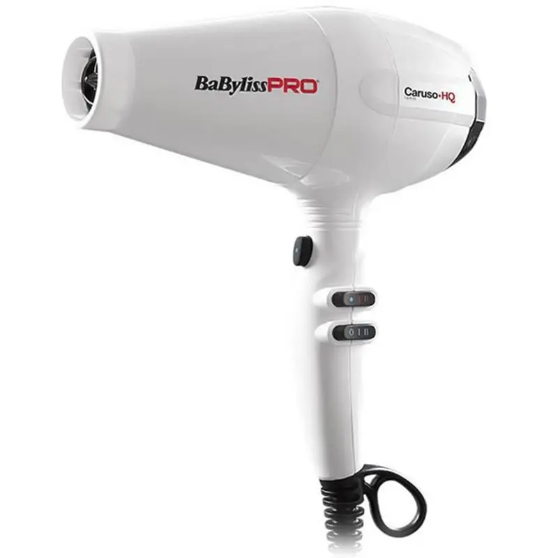 Фен для волосся BaByliss PRO Caruso-HQ BAB6970WIE є оновленою і вдосконаленою популярною моделлю, як серед професіоналів, так і серед звичайних покупців. Тепер затребувана модель стала ще більш технологічною і витривалішою, а наявність сучасних технологій відкриє додаткові можливості в роботі. Високопродуктивний мотор змінного струму італійського виробництва розганяє потік повітря до швидкості 172 км/год. Завдяки такій продуктивності сушка волосся буде набагато ефективнішою, а результати укладок чудовими. У поєднанні з потужністю 2400 Вт дана модель може застосовуватися абсолютно для будь-яких завдань, особливо фен буде ефективний на довгих і густих волоссі. Варто відзначити, що нагрівальний елемент так само зазнав змін. Оптимізована конструкція нагрівача дозволила зробити видуваючий потік більш однорідним, без локальних перегрівів, що значно підвищує якість і безпеку сушіння волосся. Температура повітря на виході складає 85 °С, а при максимальній потужності і одягненій насадки-концентратор - 140 °С. Така продуктивність забезпечує швидкість сушіння волосся в 6.4 грама в хвилину. Для захисту волосся в моделі BaByliss PRO BAB6970WIE застосовується сучасна технологія іонізації. З перших секунд роботи фена мільйони негативно заряджених негативних іонів насичують волосся, стимулюючи волосяну кутикулу закривати лусочки, завдяки чому волосся стає гладкими, блискучими і слухняними, а природна волога волосся зберігається. Використання іонізації несе собою тільки користь для здоров’я волосся. Дизайн моделі BAB6970WIE так само злегка змінився - фен тепер має гарне лакове покриття з блискітками, які роблять його більш представницькими і додають дорожнечі. Балансування та збирання як і раніше на висоті. Фен ідеально підходить для роботи правою рукою. Традиційно в моделі реалізовано 2 швидкості і 3 температурних режимів роботи, включаючи холодний обдув з окремою кнопкою по середині ручки.