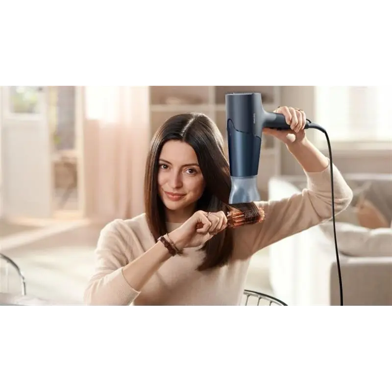 Технологія ThermoShield Датчик захисту від перегріву в активному режимі оптимізує і керує температурою повітря, захищаючи ваше волосся від шкоди, спричиненої перегріванням. Оцініть зручну та швидку сушіння з технологією ThermoShield. На 20% швидша сушка Більш потужний потік повітря 2300 Вт забезпечує на 20% більш швидке сушіння, не жертвуючи здоров’ям вашого волосся. Повітропотік 110 км/год Потужний двигун цього фена розроблявся для професійного використання. Він генерує потік повітря швидкістю до 110 км/год для швидкого сушіння і якісного укладання. 6 режимів температури та швидкості Легко підберіть поєднання температури та швидкості відповідно до своєї зачіски та типу волосся. Шість доступних режимів допоможуть точно управляти параметрами фена для ідеального укладання. Режим холодного обдування Режим холодного обдування дозволяє зафіксувати зачіску за допомогою струменя холодного повітря. Вузька насадка Вузька насадка забезпечує спрямований потік повітря для створення фінальних штрихів вашого ідеального укладання.