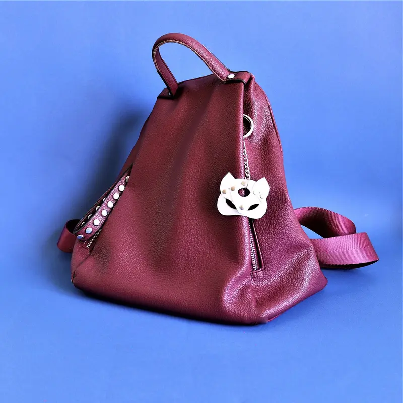 Брелок на сумку - модный и привлекательный аксессуар, тем более, когда он столь необычный! Предлагаем купить брелок-кошечку из натуральной кожи, украшенный хольнитенами (заклепками). Выглядит потрясающе!