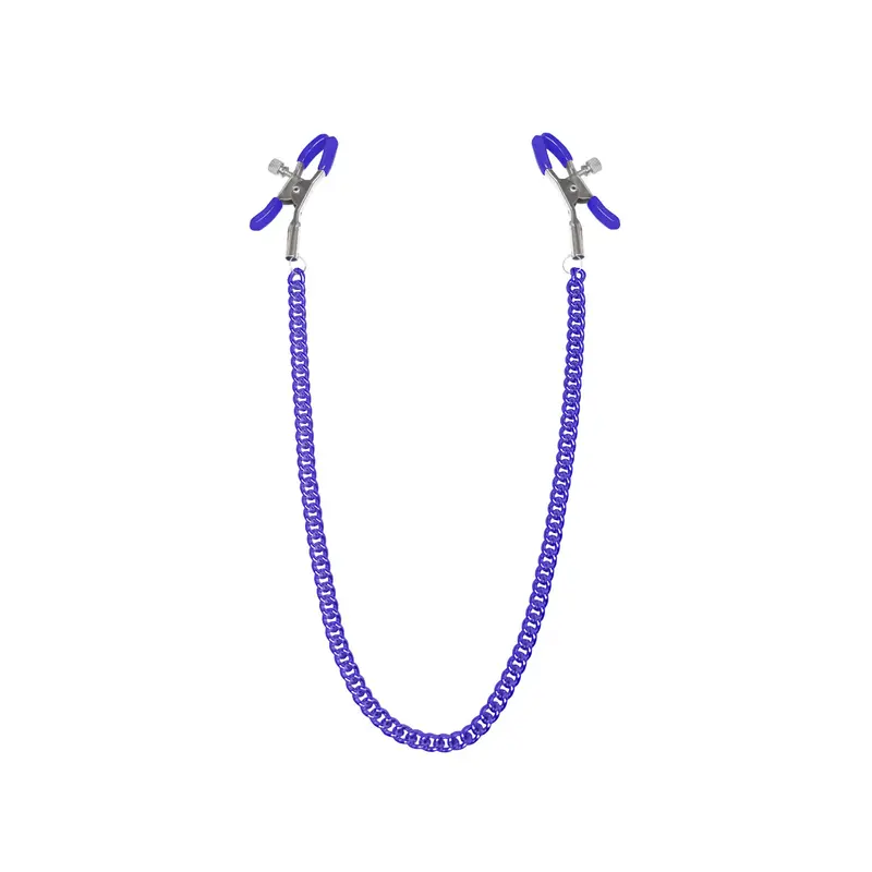 Классические зажимы для сосков, соединенные цепочкой, позволяет создать нужный уровень давления на сосок, а также — играть, потягивая за цепочку, давая ее в рот подопечной или прикрепляя к чему-то.