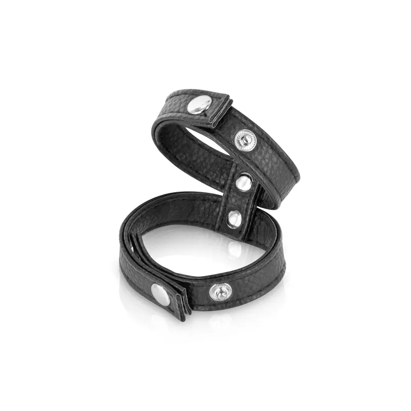 Ерекційне кільце з регулюванням діаметра Fetish Tentation Double Сockring виготовлене з високоякісної штучної шкіри та доповнене крутими металевими заклепками. Кнопки дозволяють легко підлаштовувати діаметр під параметри!