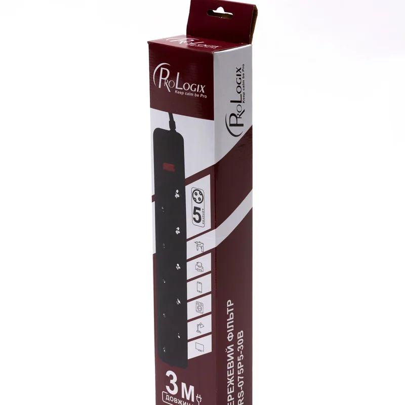 Фільтр живлення ProLogix (PRS-075P5-30B) 0.75 мм, 5 розеток, 3 м, чорний