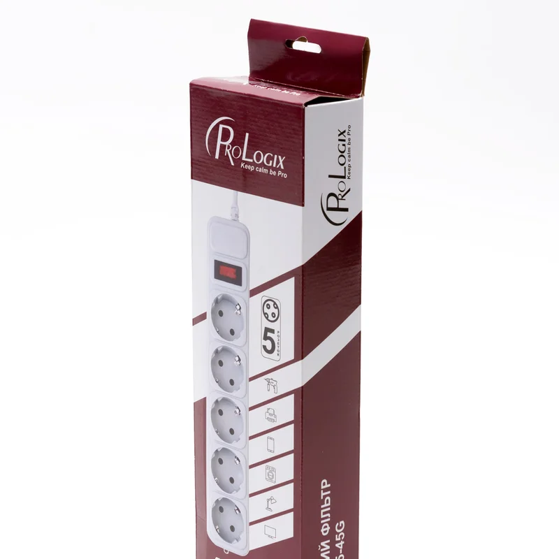 Фільтр живлення ProLogix (PRS-075P5-45G) 0.75 мм, 5 розеток, 4.5 м, сірий