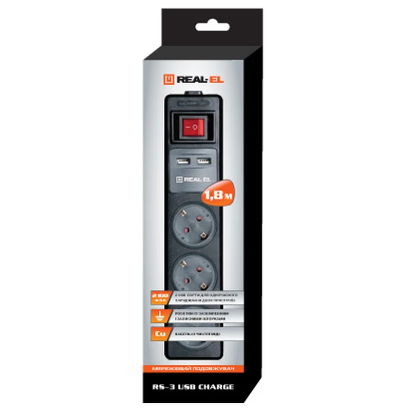 Фільтр живлення REAL-EL RS-3 USB Charge