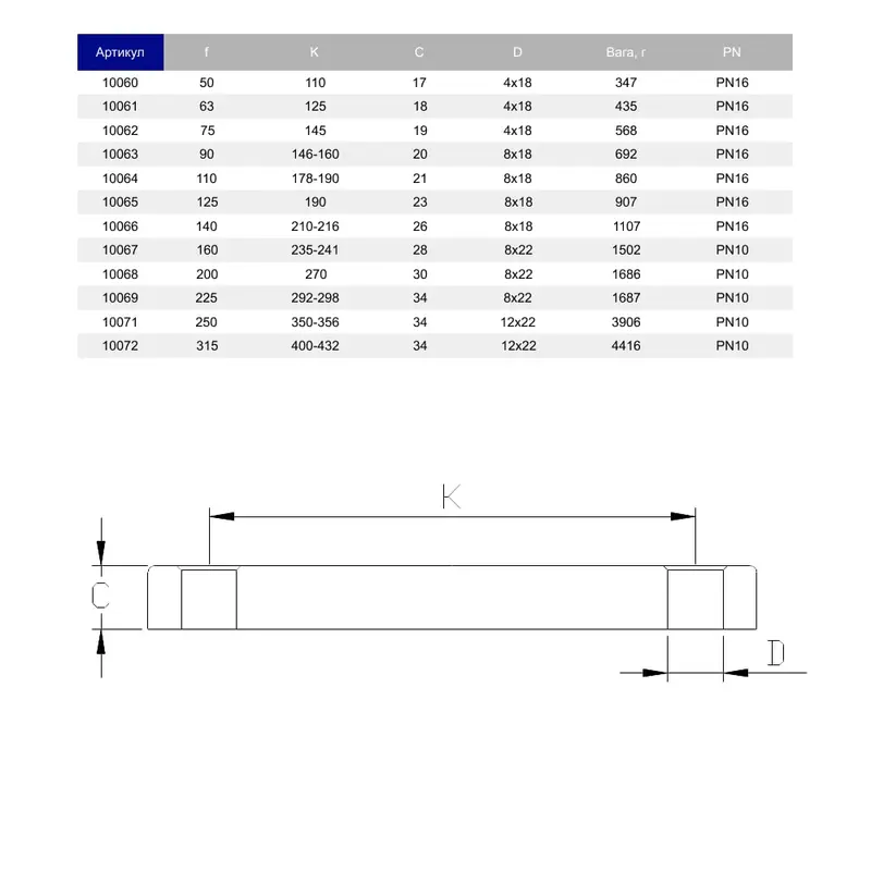 Фланець глухий ПВХ Hidroten 1010068, d200 мм