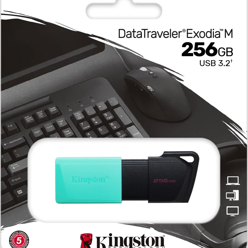 Накопичувач DataTraveler Exodia компанії Kingston забезпечує продуктивність USB 3.2 Gen 1 для простого доступу до ноутбуків, настільним ПК, моніторів і інших цифрових пристроїв. DT Exodia дозволяє швидко передавати і зручно зберігати документи, музику, відеофайли і так далі. Практична конструкція і стильні кольори роблять цей накопичувач ідеальним рішенням для повсякденного використання на роботі, вдома, в школі або будь-якому іншому місці. Доступні варіанти ємності DT Exodia до 256 ГБ. Накопичувач забезпечується п"ятирічною гарантією, безкоштовною технічною підтримкою і відрізняється легендарної надійністю, характерною для всієї продукції Kingston.