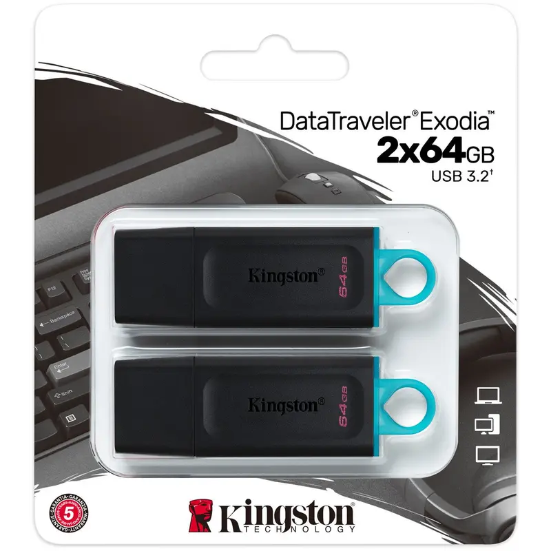 Накопичувач DataTraveler Exodia компанії Kingston забезпечує продуктивність USB 3.2 Gen 1 для простого доступу до ноутбуків, настільним ПК, моніторів і інших цифрових пристроїв. DT Exodia дозволяє швидко передавати і зручно зберігати документи, музику, відеофайли і так далі. Практична конструкція і стильні кольори роблять цей накопичувач ідеальним рішенням для повсякденного використання на роботі, вдома, в школі або будь-якому іншому місці. Доступні варіанти ємності DT Exodia до 256 ГБ. Накопичувач забезпечується п"ятирічною гарантією, безкоштовною технічною підтримкою і відрізняється легендарної надійністю, характерною для всієї продукції Kingston.