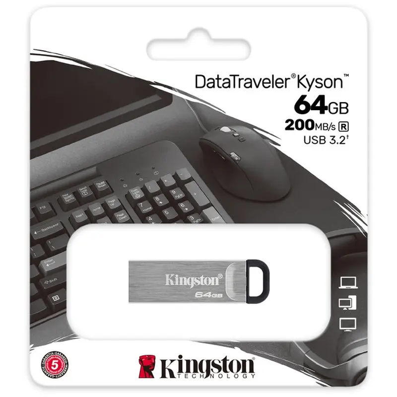Флеш-накопичувач USB3.2 64GB Kingston DataTraveler Kyson Silver/Black (DTKN/64GB)