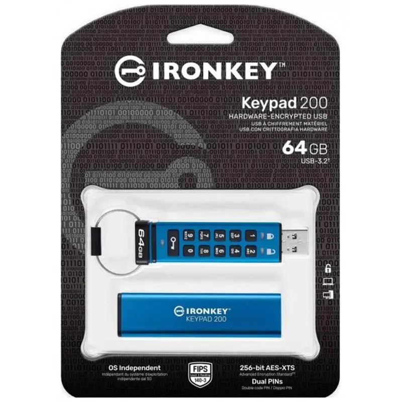 Флеш-накопичувач USB3.2 64GB Kingston IronKey Keypad 200 Type-A Blue (IKKP200/64GB)